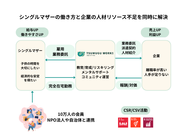 | 事業内容 | シングルマザーの方々が活躍するアウトソーシング事業 |